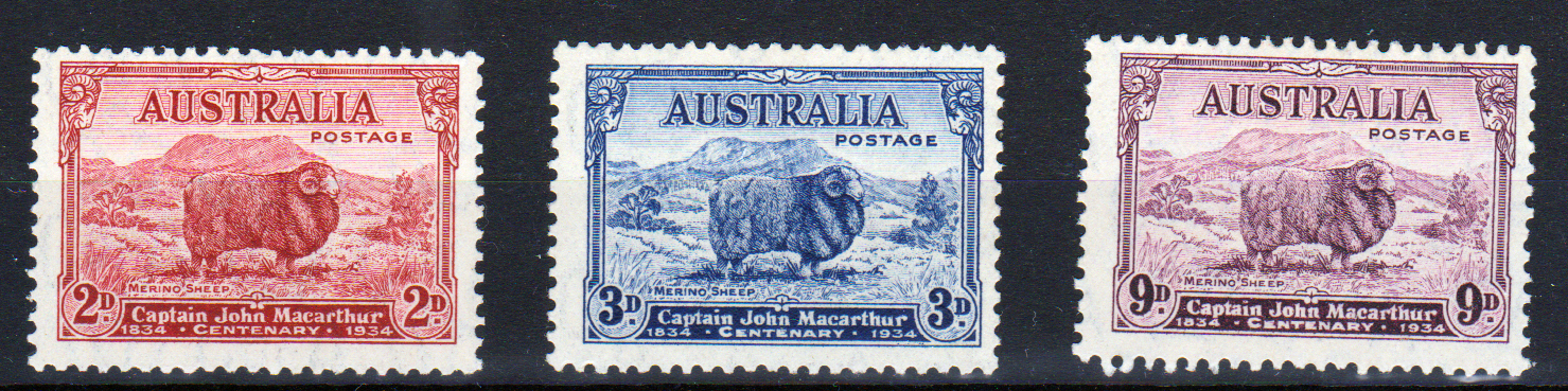 Australia 1934 SG150-2 2d, 3d & 9d, MH Cat £55 #1105