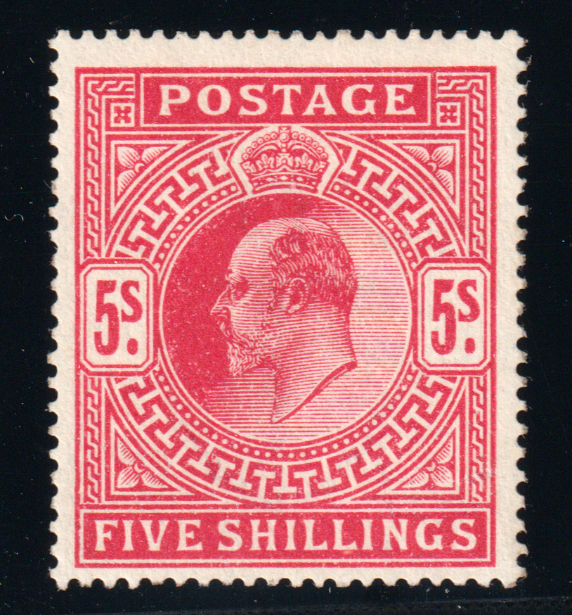 GB EDVII SG263 5/- Bright Carmine Lightly Hinged Mint Cat £450