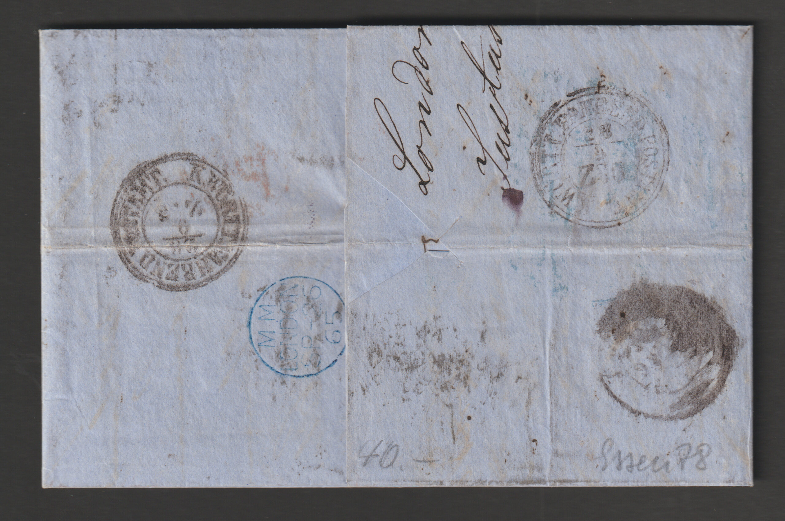 GB QV 1865 SG43 1d Rose-Red Pl95 & SG97 6d Lilac Pl5 on cover to Heilbronn #1077