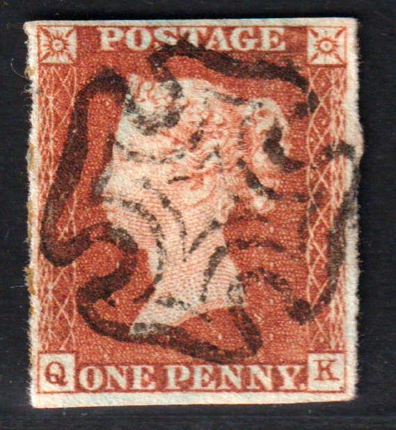 GB QV SG8 1d Red-Brown Letter QK Maltese Cross Cancel VFU (2) #1048