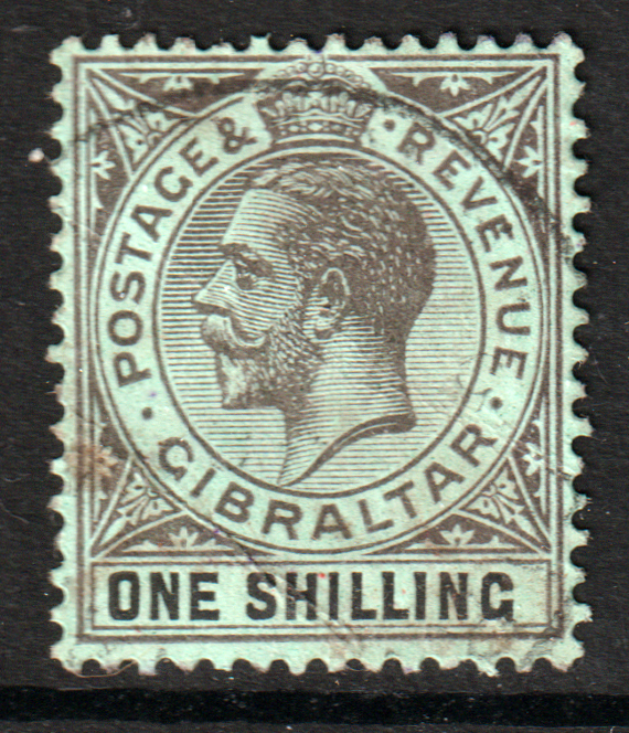Gibraltar EDVII SG81 1/- Black & Green FU #1037