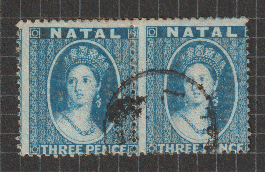 / Natal 1861 QV SG12 3d Blue Pair FU Cat £100