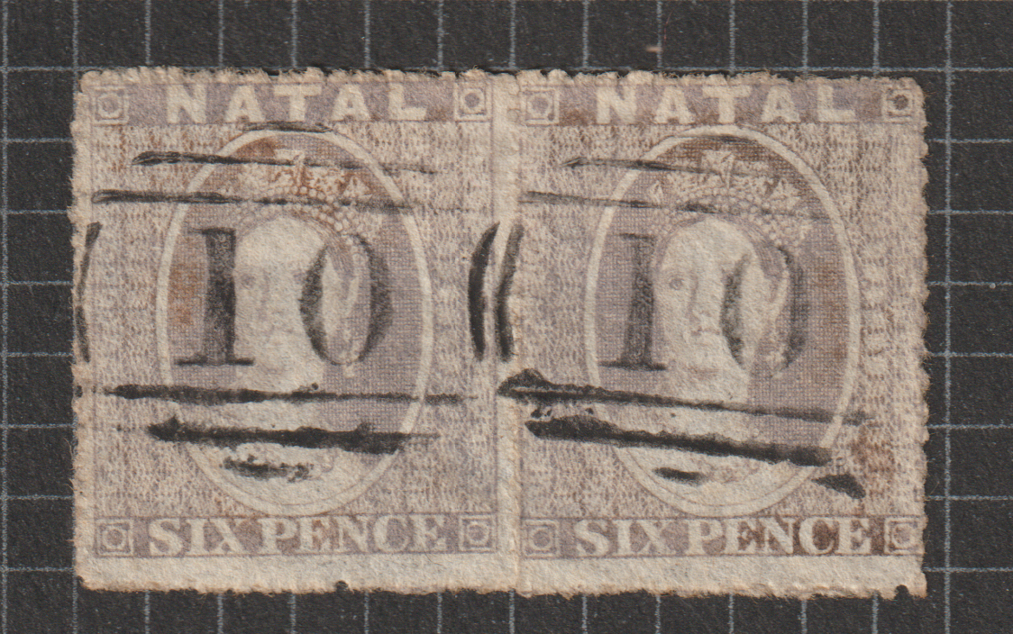 Natal QV SG13 6d Grey Pair VFU Cat £170