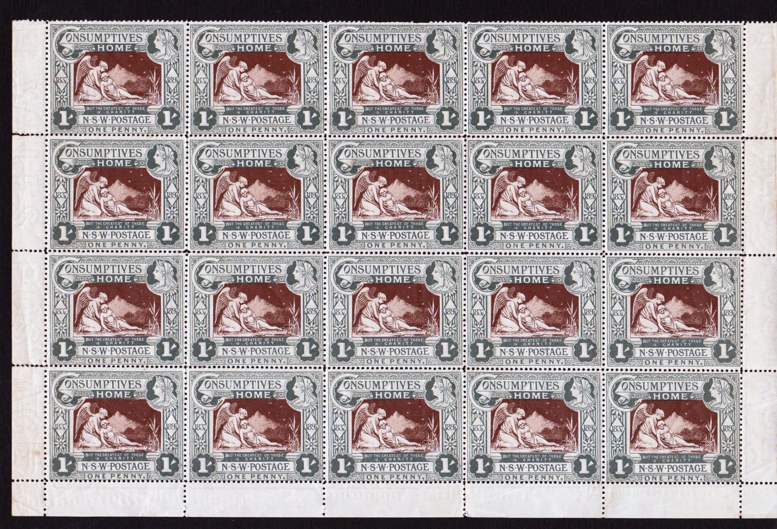 New South Wales SG280 1/- Charity marginal block of 20 from the bottom of the sheet never hinged mint