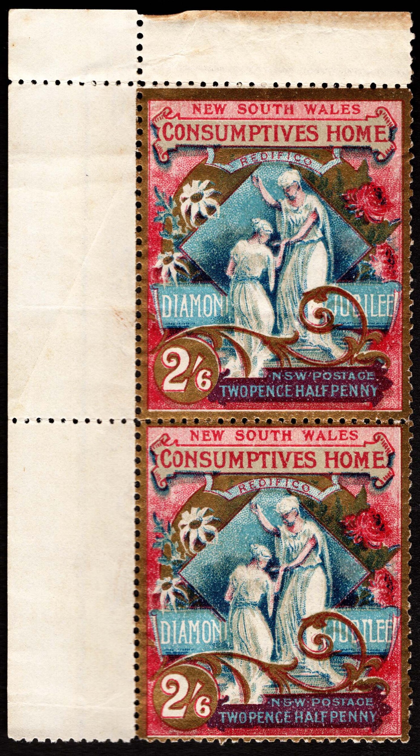 New South Wales SG281 2/6 Charity Marginal Mint Pair Cat £500 Diagonal crease in margin just affects top left corner of top stamp #1061